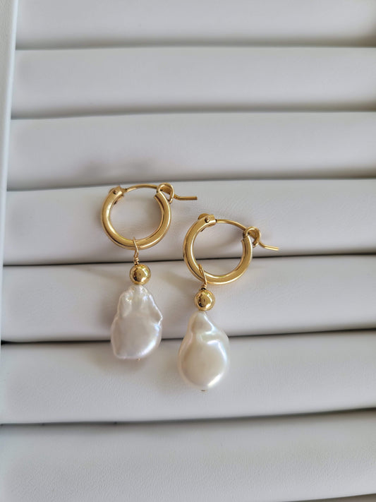 Aki - Gold Filled Hoops with Pearl -Jewelry - Nury M Jewelry