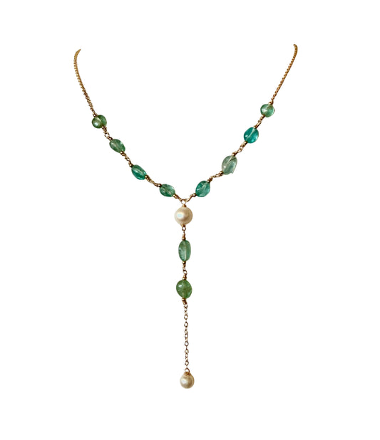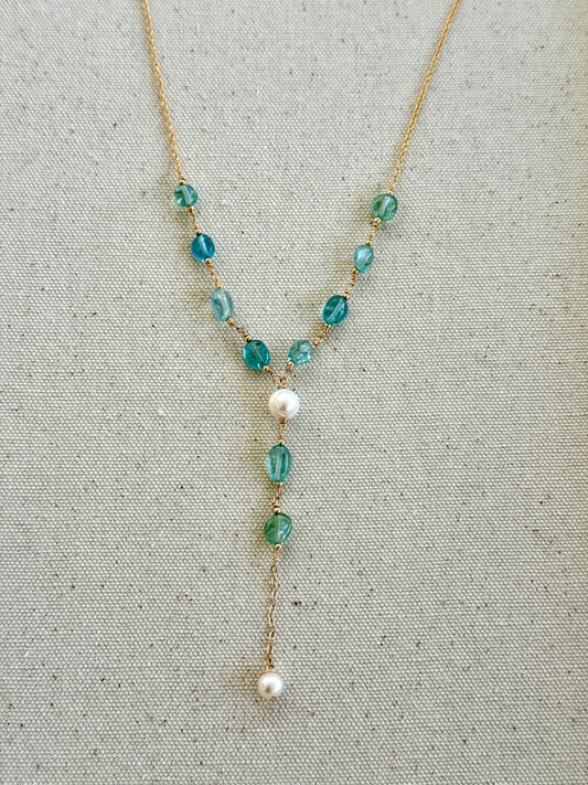 Lia - Apatite Lariat Modern Bridal Necklace - Nury M Jewelry