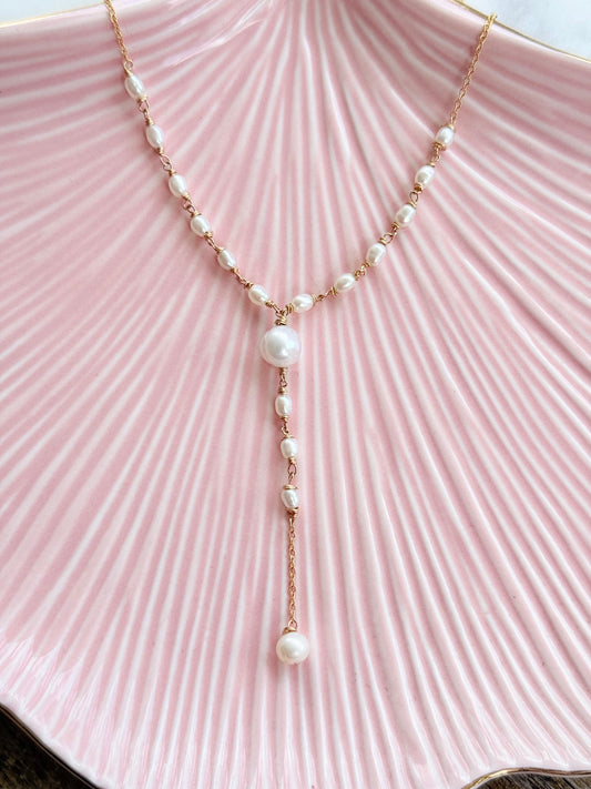 Ania - Bridal Freshwater Lariat Necklace - Nury M Jewelry